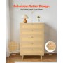 VEVOR 5 Drawer Rattan Dresser, Modern Closet Dresser for Bedroom, Natural Rattan Chest of Drawers with Metal Handles & Wooden Legs, Chest Clothing Organizer & Storage for Bedroom, Living Room, Hallway
