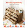 Komoda rattanowa VEVOR z 6 szufladami i metalowym uchwytem, nowoczesna szafka rattanowa do sypialni, salonu i przedpokoju (144,5 x 45 x 79,5 cm), szafka z szufladami, orzech