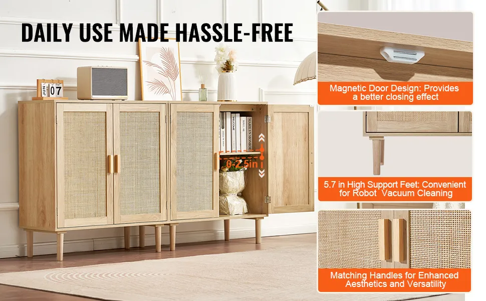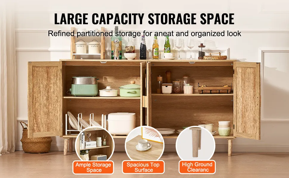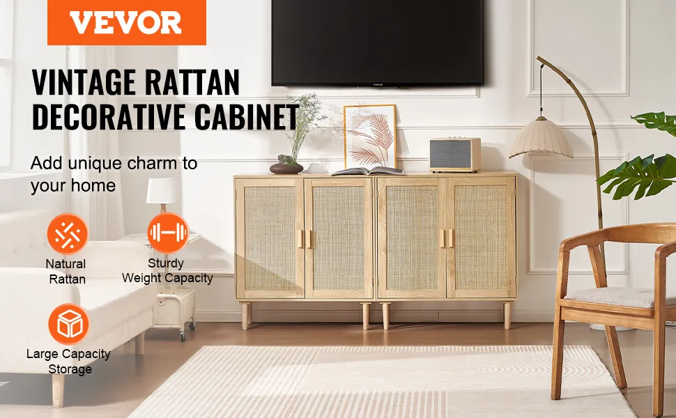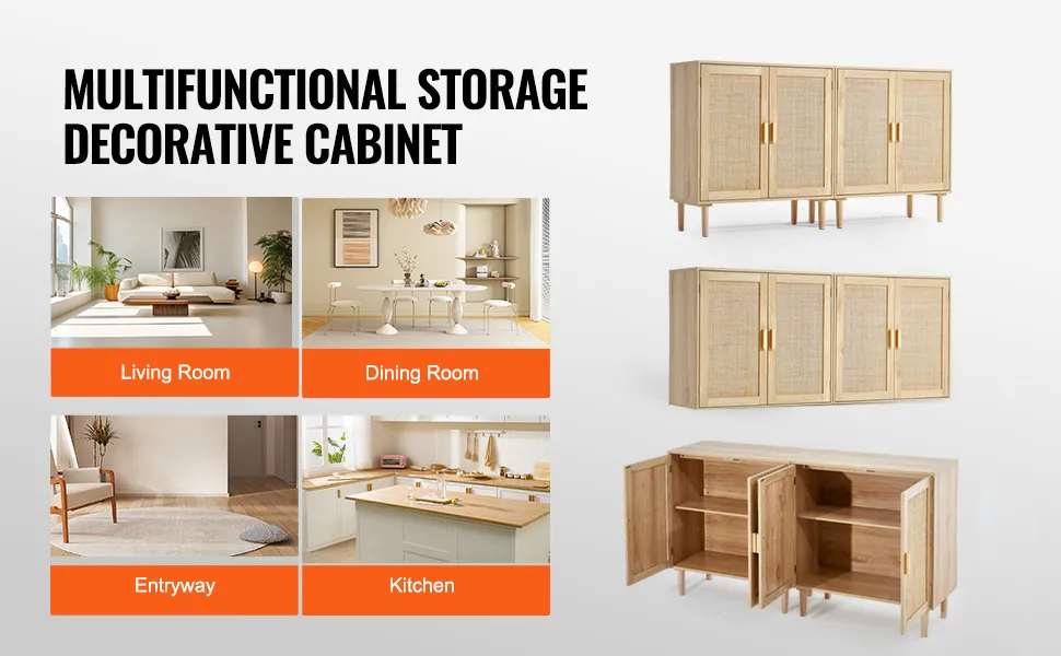 VEVOR Komoda z rattanu, 2-częściowa szafka do przechowywania z 4 magnetycznymi drzwiami, kredens z regulowanymi półkami, idealna do przedpokoju, salonu lub kuchni