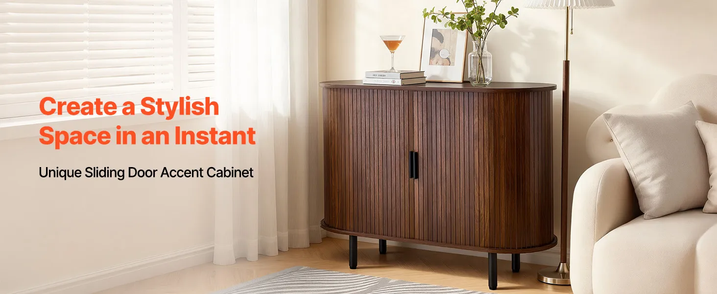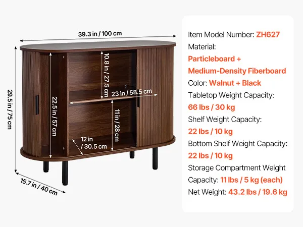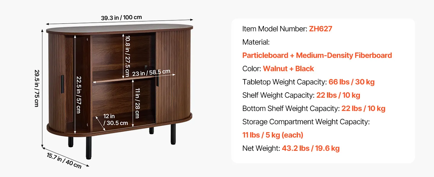 VEVOR Szafka kuchenna z 2 drzwiami przesuwnymi, szafka bufetowa w stylu średniowiecznym do salonu/przedpokoju, szafka do przechowywania 100 x 40 x 75 cm Szafka kuchenna bufetowa z orzecha włoskiego