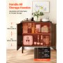 Wszechstronna przestrzeń do przechowywania: Komoda posiada ukryte boczne przegródki z regulowanymi i wyjmowanymi półkami oraz oferuje trzy opcje wysokości. Można w niej przechowywać naczynia, szklanki i przybory kuchenne, a szeroki blat pomieści ekspres do kawy, toster lub przedmioty dekoracyjne.