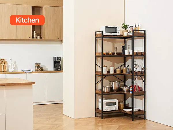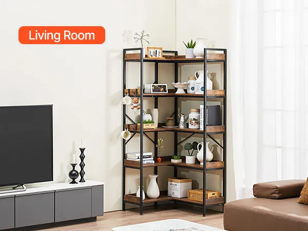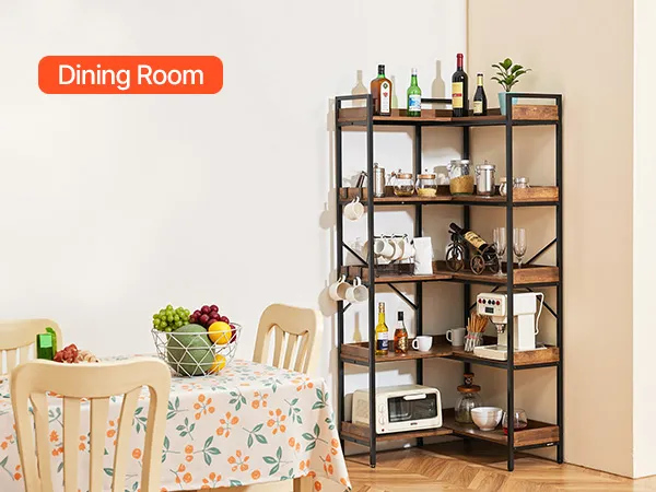Ta narożna półka charakteryzuje się wielopoziomową, podzieloną na kategorie konstrukcją, wysoką nośnością i zabezpieczeniami przed przewróceniem, umożliwiając bezpieczne przechowywanie różnych przedmiotów. Można ją umieścić w narożnikach salonu, jadalni lub kuchni, optymalnie wykorzystując narożniki i zyskując dodatkową przestrzeń do przechowywania.