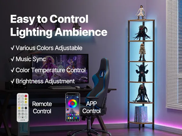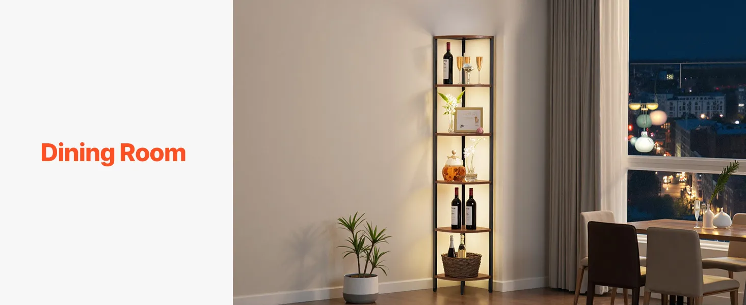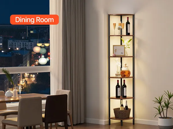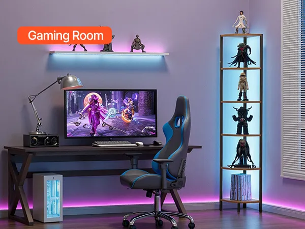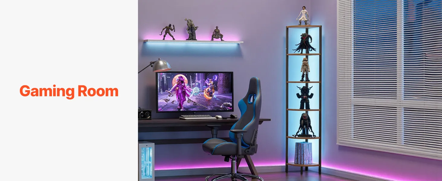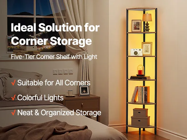 Półka narożna z oświetleniem: Ta wielofunkcyjna półka narożna łączy w sobie listwy oświetleniowe LED z wielopoziomową przestrzenią do przechowywania. Pozwala to maksymalnie wykorzystać narożniki, stworzyć więcej miejsca do przechowywania i nadać wyjątkowy charakter często pomijanym kątom. Idealnie nadaje się do salonu, sypialni, gabinetu lub kuchni.