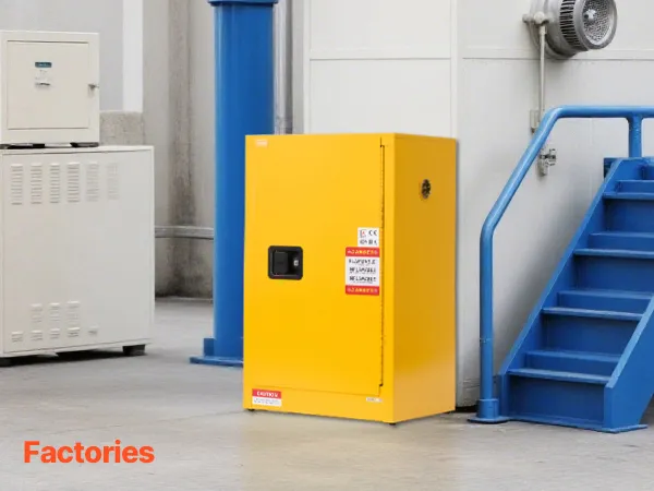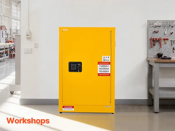 Uniwersalne zastosowanie w różnych środowiskach: Ta szafa do przechowywania łatwopalnych cieczy łączy w sobie bezpieczeństwo i wygodę, dzięki czemu idealnie nadaje się do warsztatów, zakładów produkcyjnych, garaży i innych obszarów, w których materiały łatwopalne lub palne muszą być bezpiecznie przechowywane