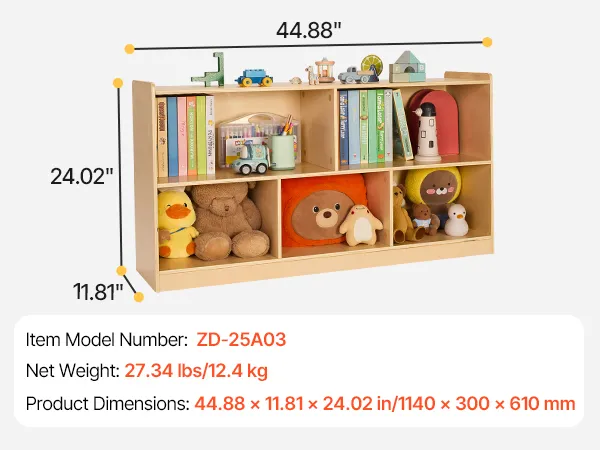Optymalna organizacja: Ta półka dla dzieci Montessori posiada pięć przegródek i górną półkę. Pomaga dzieciom w uporządkowanym przechowywaniu zabawek, książek i innych przedmiotów. Tworzy uporządkowane środowisko i sprzyja wczesnemu rozwojowi nawyków organizacyjnych.