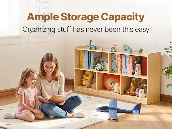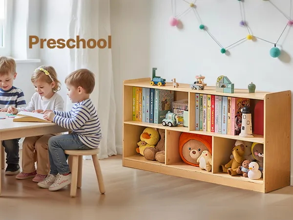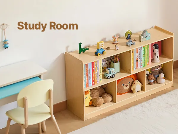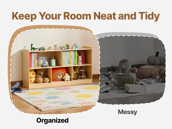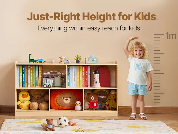 Łatwy w użyciu: Ta półka dla maluchów ma otwarte przegródki, dzięki czemu dzieci mogą łatwo przeglądać i sięgać po przedmioty. Oferuje praktyczne, uporządkowane i atrakcyjne rozwiązanie do przechowywania na wysokości dostosowanej do potrzeb dziecka, zachęcając je do samodzielności i sprawiając, że sprzątanie staje się przyjemnością.