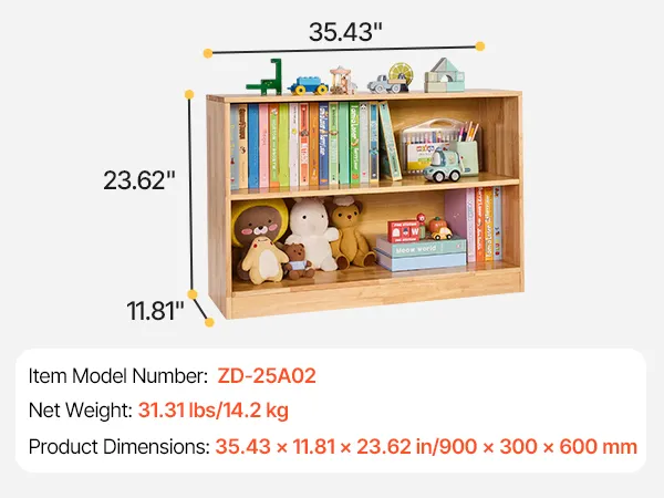 Regał dziecięcy VEVOR (dł. 90 cm), dwupoziomowa szafka na zabawki, szafka do przechowywania zabawek, półka na zabawki do sypialni, pokoju dziecięcego, salonu, gablota, brązowy