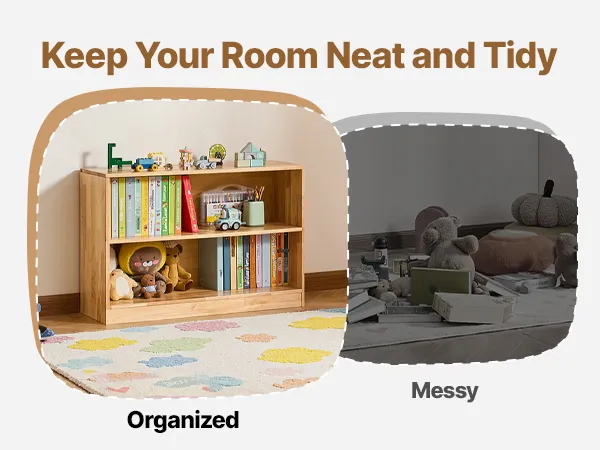 Optymalna organizacja: Ta półka Montessori dla dzieci ma dwie przegrody i górną półkę. Pomaga dzieciom utrzymać porządek w zabawkach, książkach i innych przedmiotach. Tworzy uporządkowane otoczenie i wspiera rozwój nawyków organizacyjnych od najmłodszych lat.