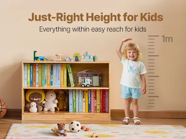 Łatwy w użyciu: Ta półka dla maluchów ma otwarte przegródki, dzięki czemu dzieci mogą łatwo przeglądać i sięgać po przedmioty. Oferuje praktyczne, uporządkowane i atrakcyjne rozwiązanie do przechowywania na wysokości dostosowanej do potrzeb dziecka, co zachęca do samodzielności i sprawia, że sprzątanie staje się przyjemnością.