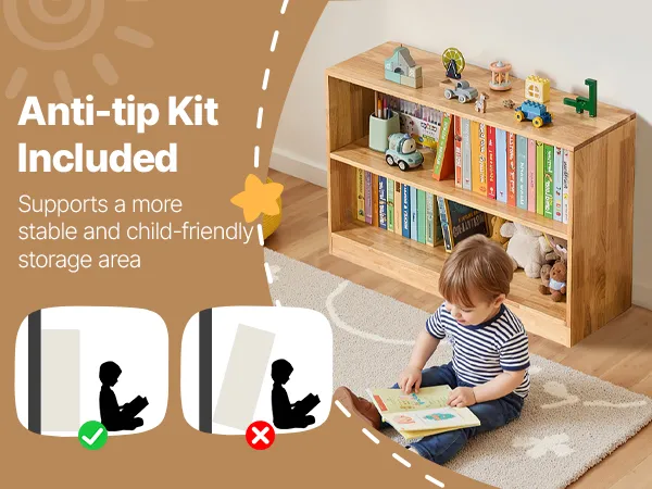Bezpieczna konstrukcja: Solidna i niezawodna. Szafka na zabawki jest wyposażona w zabezpieczenie przed przewróceniem, które zapobiega przewróceniu się podczas użytkowania i zapewnia rodzicom dodatkowe bezpieczeństwo.