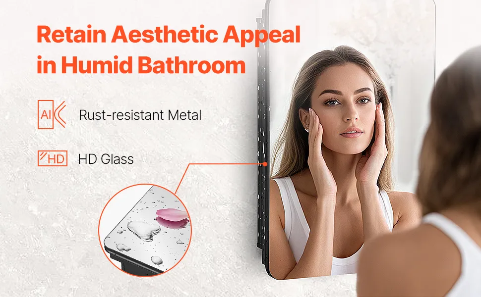 Wykonana z odpornego na korozję aluminium, ta lustrzana szafka na leki jest odporna na wilgoć, chemikalia i codzienne zużycie, zapewniając długotrwałą trwałość i ochronę.
