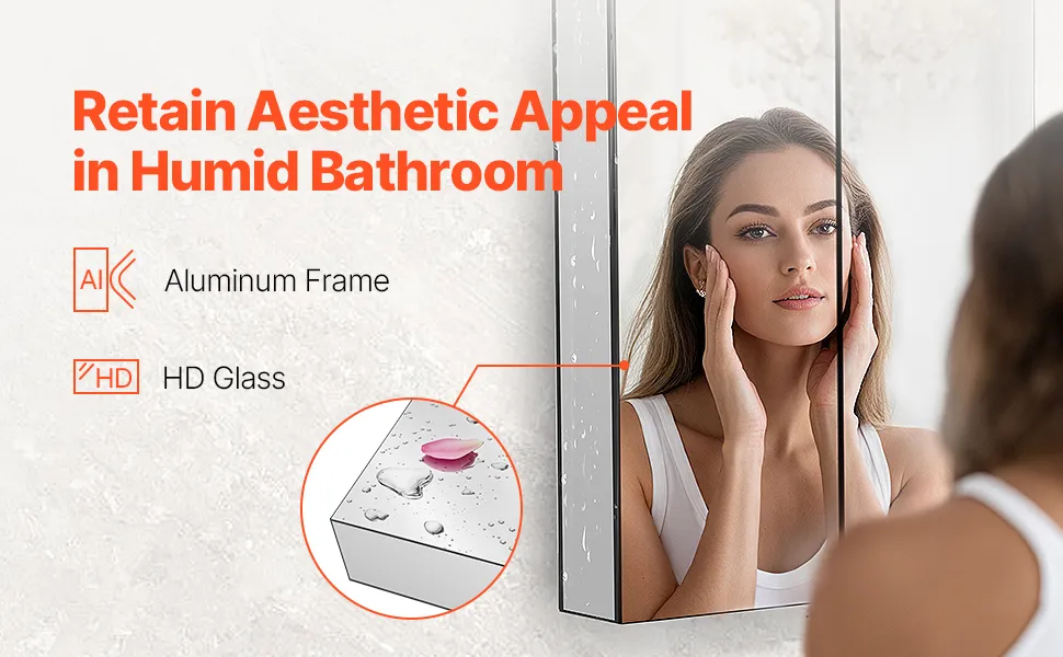 Wykonana z odpornego na korozję aluminium szafka na leki z lustrem jest odporna na wilgoć, chemikalia i codzienne zużycie, zapewniając długotrwałą trwałość i ochronę.