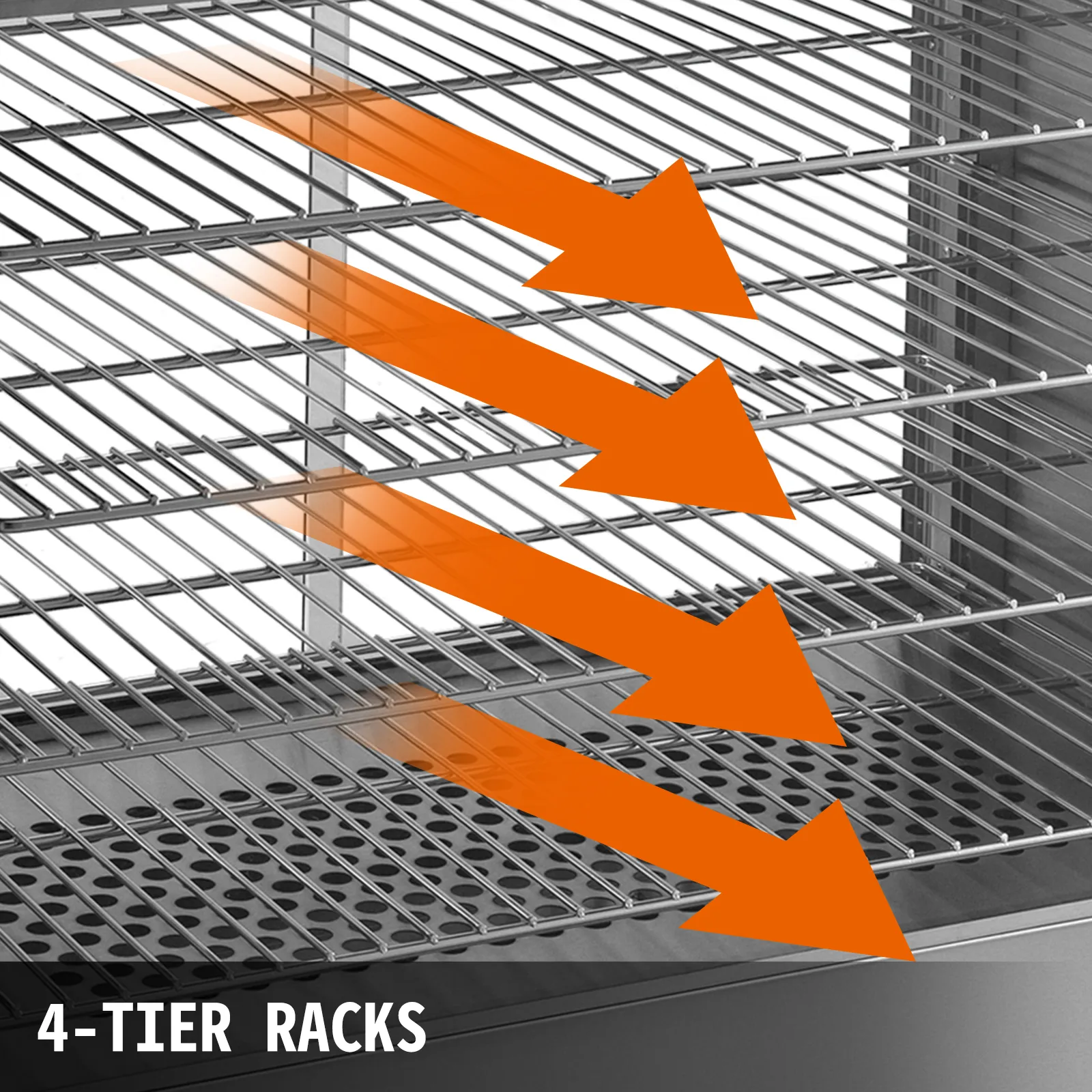 4 poziomy stojaków składają się z 4 drucianych koszy ze stali nierdzewnej, które wsuwają się i wysuwają, aby zapewnić większą pojemność podgrzewaczy do pasztecików.