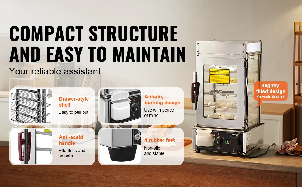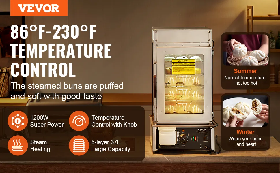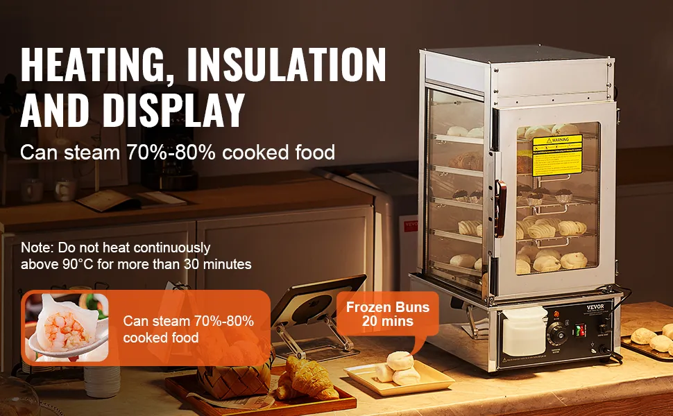 Wielofunkcyjny: Parowar nowej generacji, który łączy funkcje podgrzewania, izolacji i wyświetlania w jednym urządzeniu. Przemyślana konstrukcja zapewniająca łatwą obsługę. Uwaga: Nasz podgrzewacz do bułek na parze służy do podgrzewania, a nie do gotowania. Nie podgrzewać w temperaturze powyżej 90°C dłużej niż 30 minut bez przerwy.