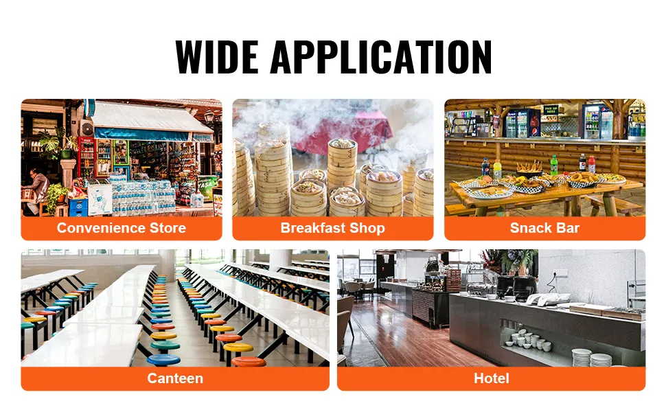 Wszechstronny: Nadaje się do gotowania na parze bułek, mantou (chińskich bułeczek na parze), kukurydzy, orzeszków ziemnych i potraw na parze. Idealny do różnych miejsc, takich jak sklepy spożywcze, bary śniadaniowe, bary szybkiej obsługi i hotele, a także do zaopatrywania szerokiej gamy lokali gastronomicznych i rozrywkowych.