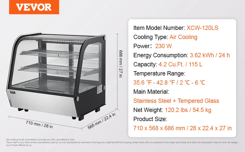 Szybkie chłodzenie: Witryna chłodnicza wyposażona jest w system chłodzenia z turbowentylatorem, który pozwala szybko schłodzić żywność do zadanej temperatury (zakres temperatur: 2-6°C / 35,6-42,8°F) i utrzymać temperaturę wewnętrzną w określonym zakresie. Urządzenie jest energooszczędne, zużywając zaledwie 3,63 kWh/24 godziny, dzięki czemu żywność pozostaje optymalnie przechowywana.