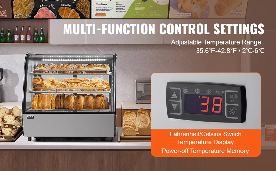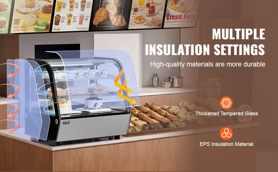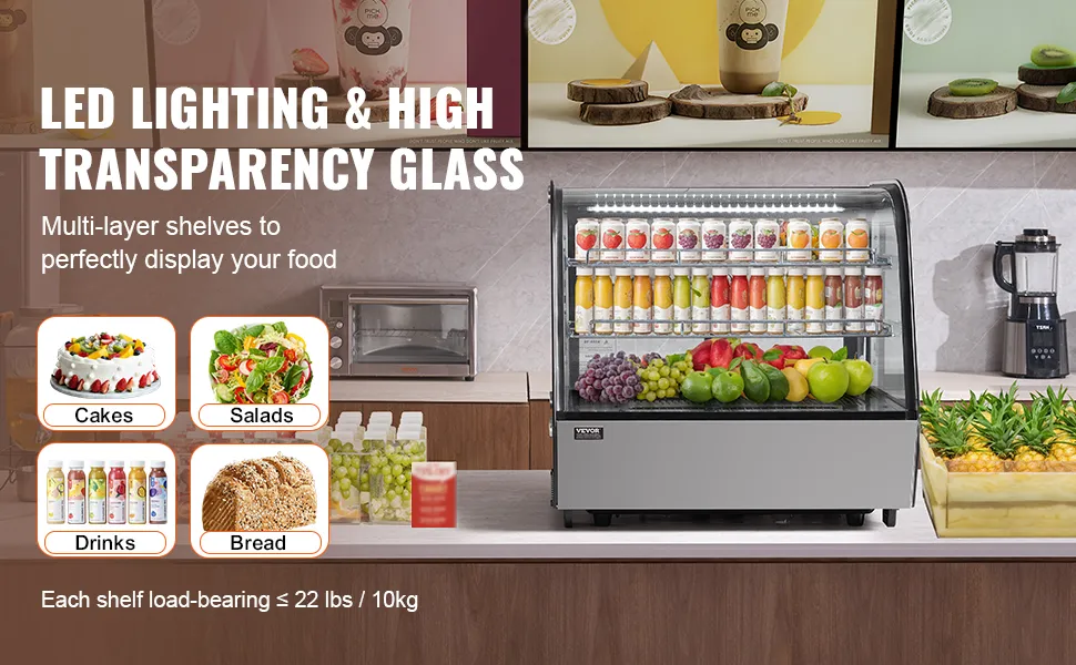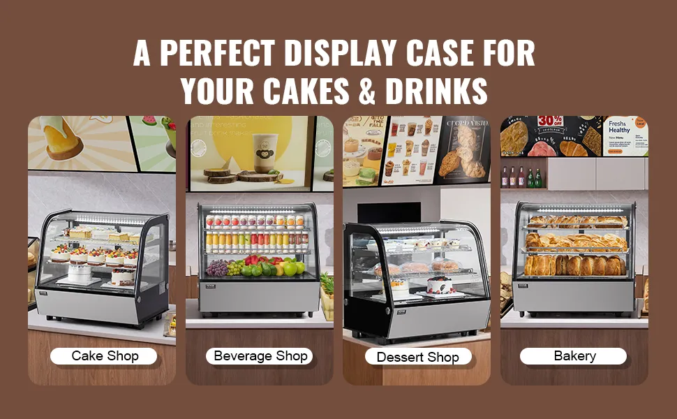 Ta witryna chłodnicza idealnie nadaje się do piekarni, cukierni, sklepów z napojami i innych placówek komercyjnych.