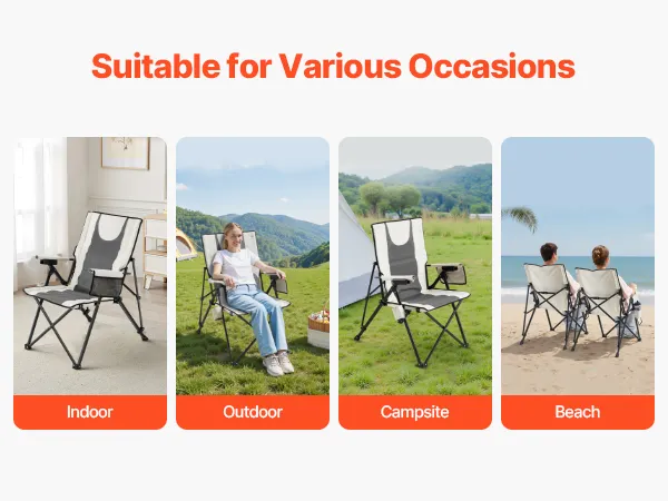Łatwe składanie: To krzesło kempingowe składa się łatwo i bez użycia narzędzi. Zarówno w podróży, jak i podczas przechowywania, jego rozkładanie i składanie jest szybkie i bezproblemowe, oszczędzając czas i energię.