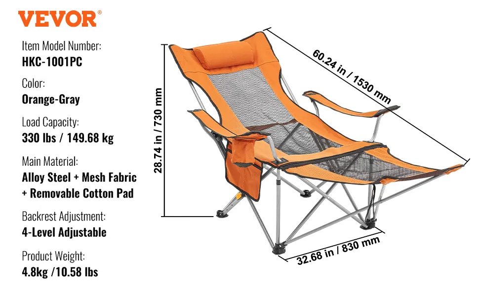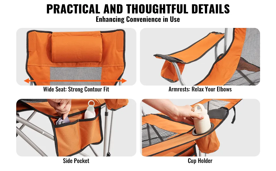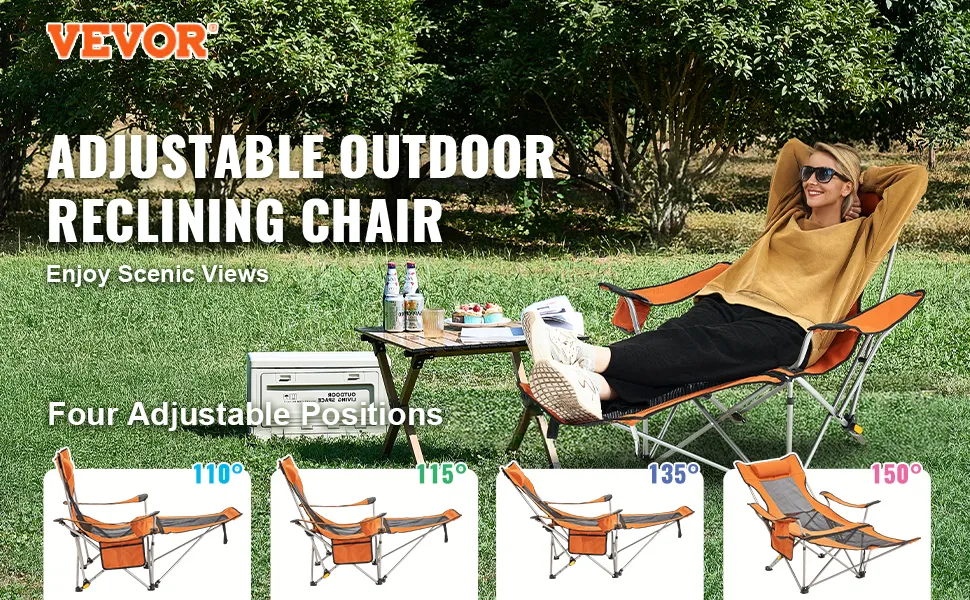 Wygodna konstrukcja: To regulowane krzesło kempingowe posiada przedłużone siedzisko dla dodatkowej stabilności. Cztery regulowane ustawienia wysokości zapewniają lepsze podparcie pleców, pozwalając na znalezienie wygodnej pozycji do czytania, drzemki lub podziwiania widoków.