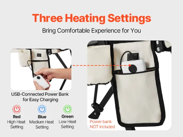 Ciesz się komfortem dzięki trzem ustawieniom ogrzewania zasilanym przez powerbank kompatybilny z USB. Z łatwością dostosuj temperaturę do swoich pleców i siedzenia i ciesz się spersonalizowanym ciepłem, gdziekolwiek jesteś.