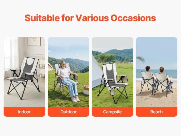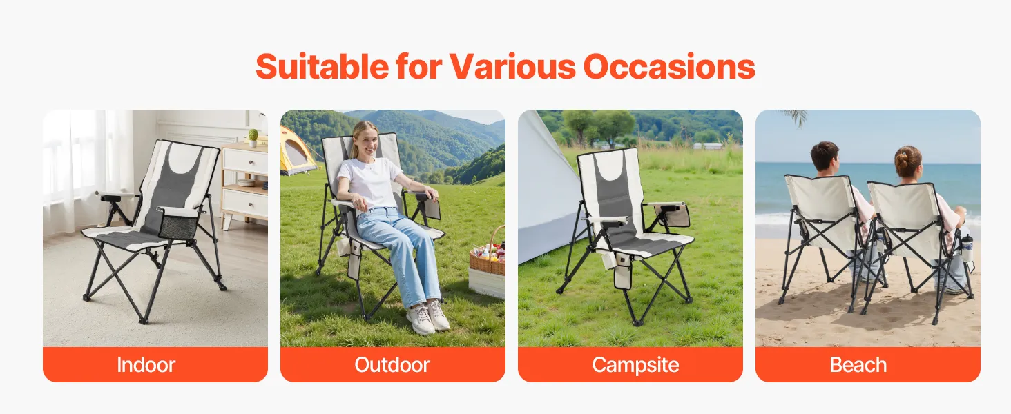 Łatwe składanie: To składane krzesło kempingowe składa się łatwo i bez użycia narzędzi. Zarówno w podróży, jak i podczas przechowywania, jego rozkładanie i składanie jest szybkie i bezproblemowe, oszczędzając czas i energię.