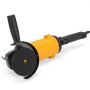 • Dwa uchwyty i bezpieczne przełączniki: Dwa uchwyty z ergonomicznymi uchwytami zapewniają stabilność pracy. Chwyt boczny eliminuje zacinanie się dłoni i zwiększa trwałość silnika. Istnieją dwa przełączniki szlifierki kątowej o zmiennej prędkości przeznaczone do różnych prędkości początkowych.