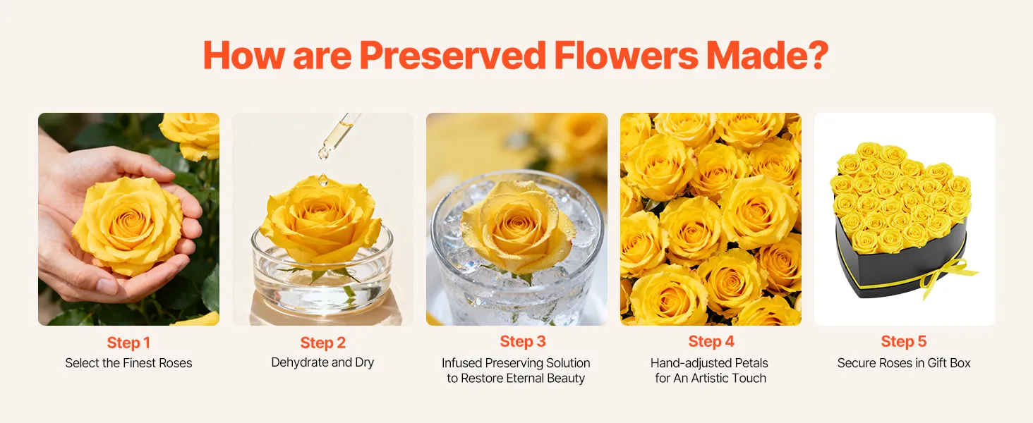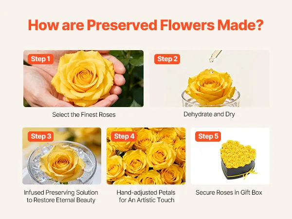 Wieczne kwiaty – nieprzemijające piękno: Dzięki zaawansowanym technikom konserwacji zakonserwowane róże pozostają świeże i pełne życia nawet przez 3 lata, a ich stabilna konstrukcja zapobiega odkształceniom i zapewnia długotrwałą elegancję.