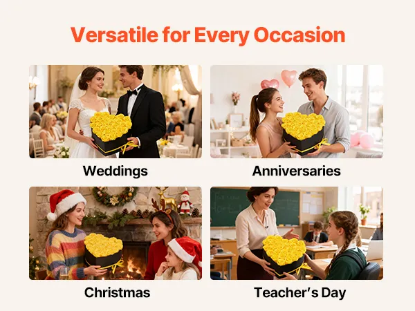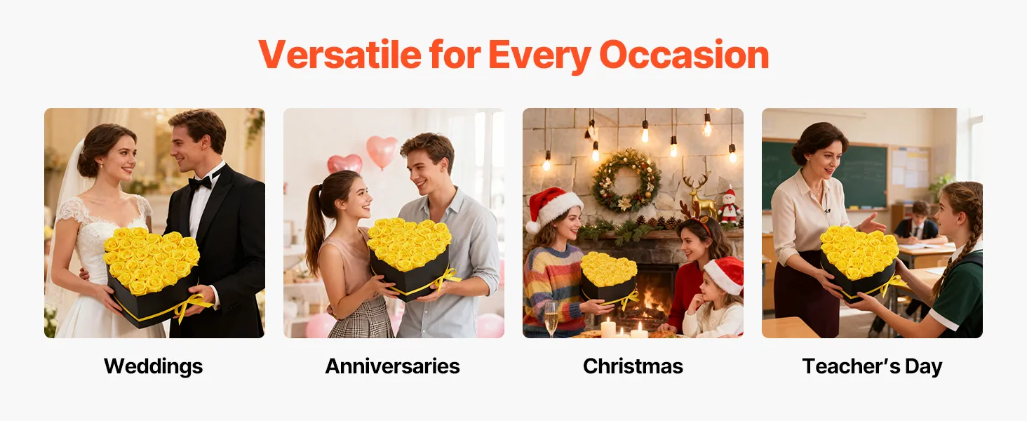 Wszechstronny wystrój wykonany z zakonserwowanych róż: Dzięki swojej naturalnej fakturze i zrównoważonemu wzornictwu, te wieczne kwiaty idealnie wpasowują się w wystrój salonów, sypialni, wesel lub innych wydarzeń, doskonale komponując się z wystrojem wnętrz i podkreślając atmosferę pomieszczeń i wydarzeń.