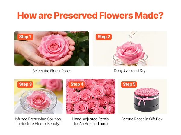 Wieczne kwiaty – nieprzemijające piękno: Dzięki zaawansowanym technikom konserwacji zakonserwowane róże pozostają świeże i pełne życia nawet przez 3 lata, a ich stabilna konstrukcja zapobiega odkształceniom i zapewnia długotrwałą elegancję.
