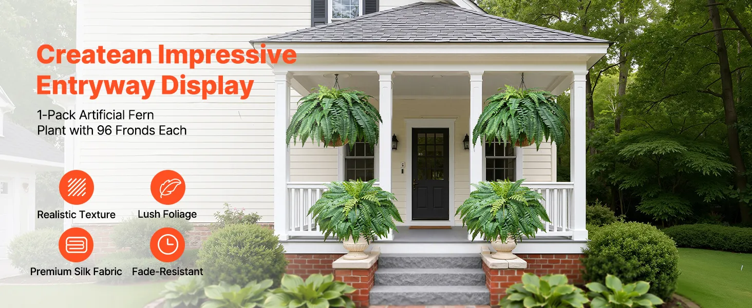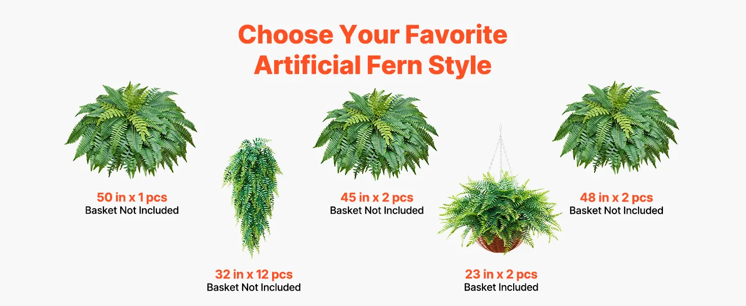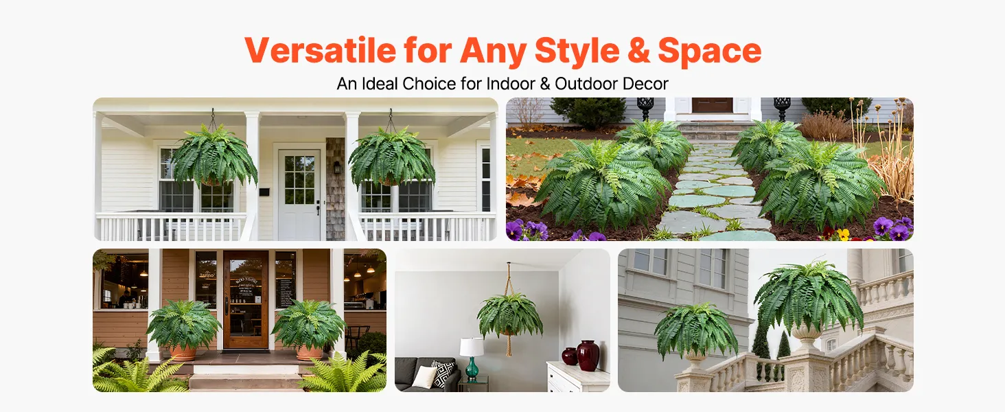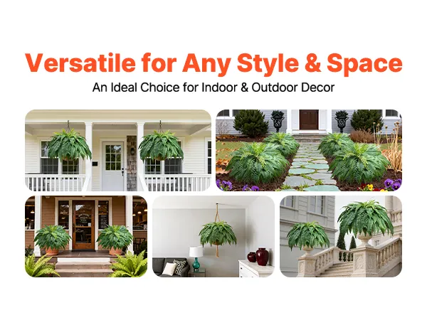 Wszechstronna dekoracja: Nasze lekkie paprocie nadają się do wiszących koszy, doniczek lub do postawienia bezpośrednio na podłodze. Idealnie sprawdzą się w domu, ogrodzie, biurze, na weselach i przyjęciach, dodając naturalnego uroku każdej przestrzeni. Uwaga: Doniczka nie jest dołączona.