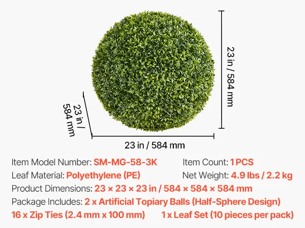 VEVOR Kula z bukszpanu, 584 mm, kula topiary, roślina sztuczna, roślina dekoracyjna, kula z bukszpanu, łatwy montaż na werandę, patio, do ogrodu, na balkon, do ogrodu i do wnętrz, do domu, na wesele