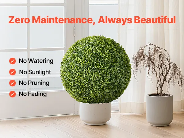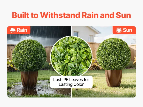 Wytrzymałe i odporne na warunki atmosferyczne: Te drzewka topiary, wykonane z wysokiej jakości materiału PE, są odporne na słońce, deszcz i wiatr, nie blaknąc ani nie odkształcając się. Idealne do stosowania wewnątrz i na zewnątrz, zapewniają długotrwałą zieleń bez konieczności konserwacji.