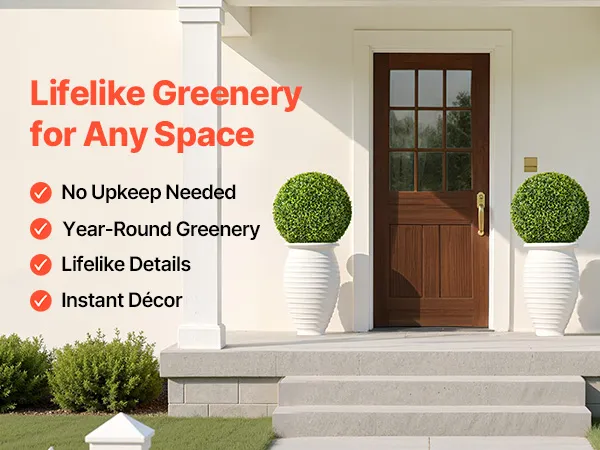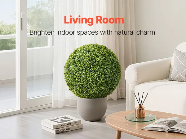 Realistyczny i naturalny wygląd: Te sztuczne drzewka topiary o wysokości 584 mm charakteryzują się bujnymi, gęstymi liśćmi z polietylenu o naturalnych odcieniach i realistycznych fakturach. Wzmocniony pień i starannie ukształtowane liście zapewniają elegancki wygląd przez cały rok.