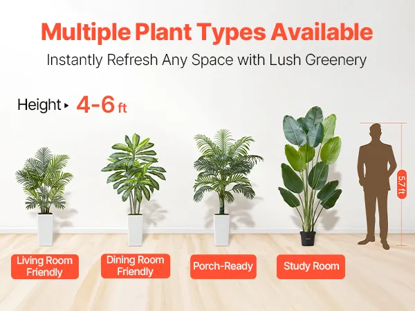 Dzięki różnorodności odmian roślin, te sztuczne drzewa tropikalne idealnie nadają się na werandy, salony, patio lub jako dekoracja basenu. Nadają się do użytku wewnątrz i na zewnątrz.
