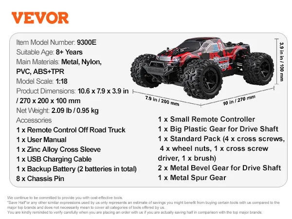 Doskonałe możliwości jazdy terenowej: Wyposażony w napęd na cztery koła, solidny metalowy wał napędowy, superszybki silnik o prędkości 20 000 obr./min i opony gumowe o dużej przyczepności, samochód zdalnie sterowany VEVOR w skali 1:18 charakteryzuje się wyjątkowymi możliwościami jazdy terenowej w każdym terenie – trawie, zboczach, żwirze, błocie i piasku.
