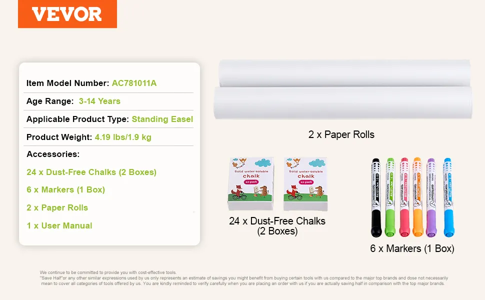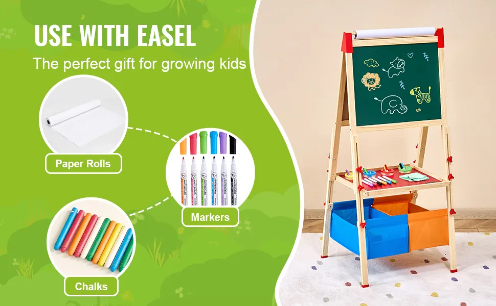 Zestaw artystyczny „wszystko w jednym”: Ten zestaw akcesoriów do sztalugi zawiera 24 bezpyłowe kredki, 6 markerów i 2 rolki papieru – idealne dla dzieci w wieku od 3 do 14 lat. Niezależnie od tego, czy uwielbiają bazgrać, pisać czy rysować, ten zestaw ma wszystko, czego potrzebują do pełnej zabawy i kreatywności przygody!