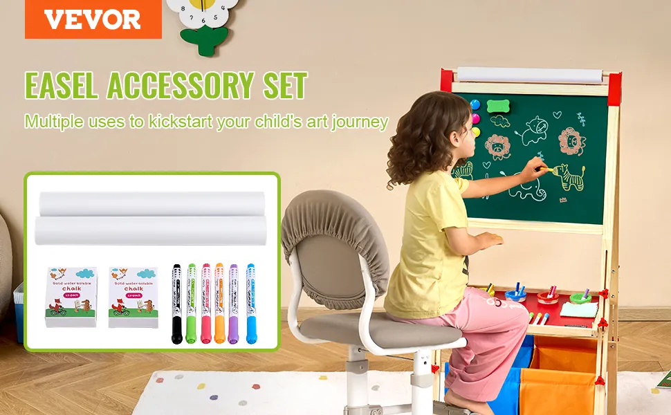 Zestaw akcesoriów do sztalug VEVOR, 32-częściowy zestaw do malowania na sztalugach artystycznych dla dzieci, w tym kredki, markery suchościeralne i rolki papieru, zestaw akcesoriów do stojących sztalug artystycznych, artykuły malarskie