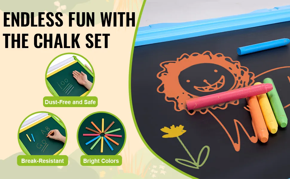 Ten zestaw akcesoriów do sztalugi zawiera dwa pudełka po 12 kredek – jedno z 6 kolorami (po 2 w każdym kolorze) i jedno z białą kredką. Niezależnie od tego, czy Twoje dziecko maluje przy sztaludze, czy na zewnątrz, te bezpyłowe kredki sprawią, że kreatywna zabawa będzie łatwa i przyjemna.