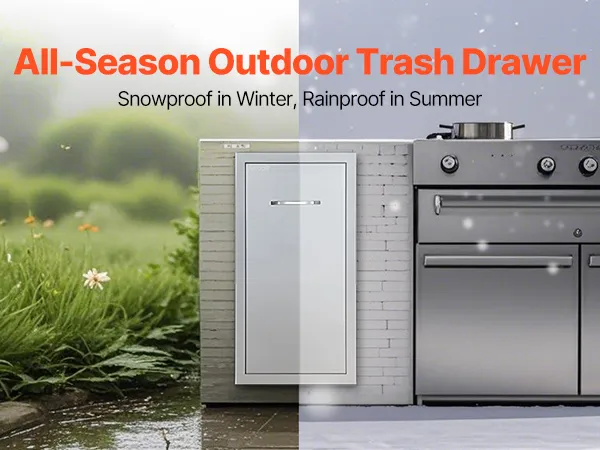 Szeroki zakres zastosowań: Ta zewnętrzna szuflada do przechowywania jest zaprojektowana na każdą pogodę, w tym wiatr i deszcz, i idealnie nadaje się do kuchni zewnętrznych i wewnętrznych, wysp grillowych, barów i grilli. Idealna do przechowywania koszy na śmieci, butli z propanem i innych rzeczy.