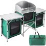 Ta przenośna kuchnia zewnętrzna jest wspierana przez stop aluminium w kształcie litery X, zapewniający niezawodną stabilność. Jest wyposażony w dwa stoliki boczne, blat i trzy zapinane na zamek kieszenie, które zapewniają dużo miejsca do przechowywania. Ten stół do gotowania na zewnątrz jest zdejmowany i składany, odpowiedni do aktywności na świeżym powietrzu.