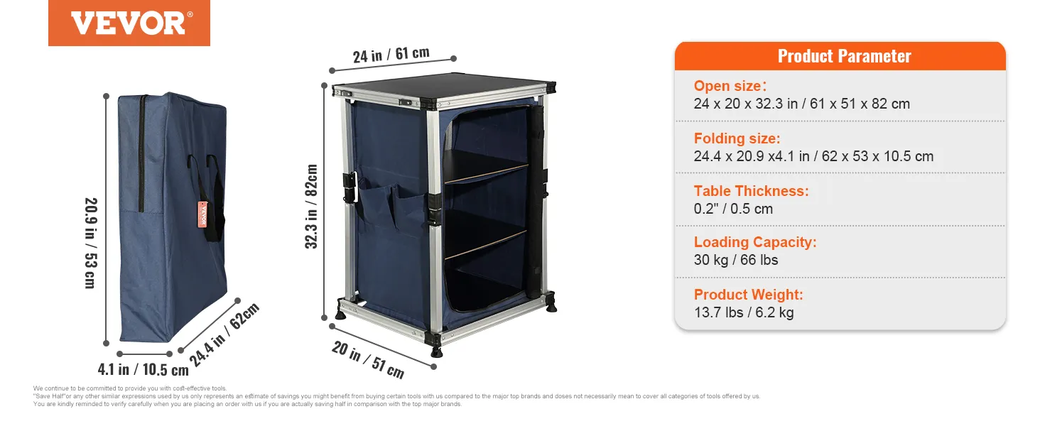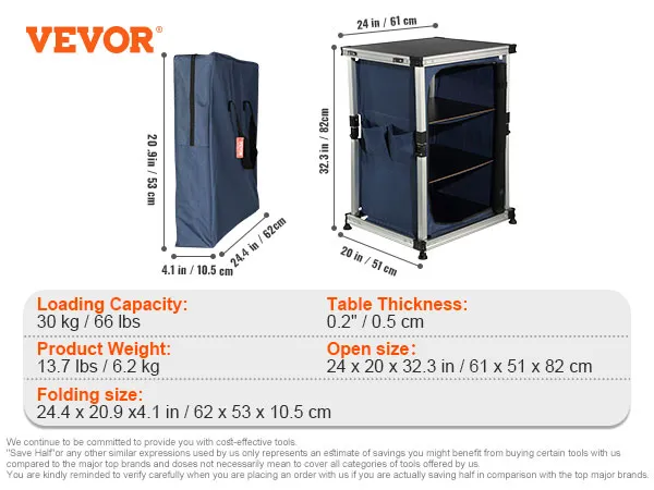 Przenośny i lekki: dzięki lekkiej i składanej konstrukcji możesz z łatwością zabrać ten stół kuchenny na zewnątrz i przechowywać go. Wszystko mieści się w torbie z tkaniny Oxford, dzięki czemu można ją zabrać ze sobą wszędzie.