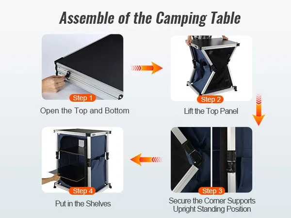 Nasz kempingowy stół do gotowania w smukłej konstrukcji można błyskawicznie rozłożyć i złożyć.