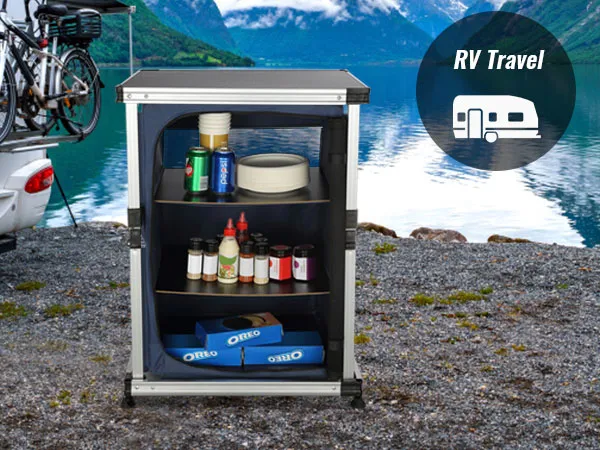Kempingowy stół kuchenny znacznie powiększa przestrzeń do przechowywania, pozwalając zabrać ze sobą jak najwięcej składników i przyborów kuchennych. Charakteryzuje się także łatwością czyszczenia.