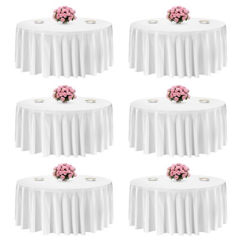 VEVOR 10 szt. Okrągłych obrusów, 3048 mm, Ochraniacz na obrusy, Niegniotący się, Obrus poliestrowy nadający się do prania w pralce, na imprezy, wesela, bankiety, wydarzenia formalne, Biały