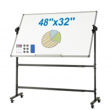 VEVOR Rolowana tablica suchościeralna, 48 x 32 cale, dwustronna, magnetyczna, mobilna, obrotowa o 360°, z regulacją wysokości, z kółkami i ruchomą tacką