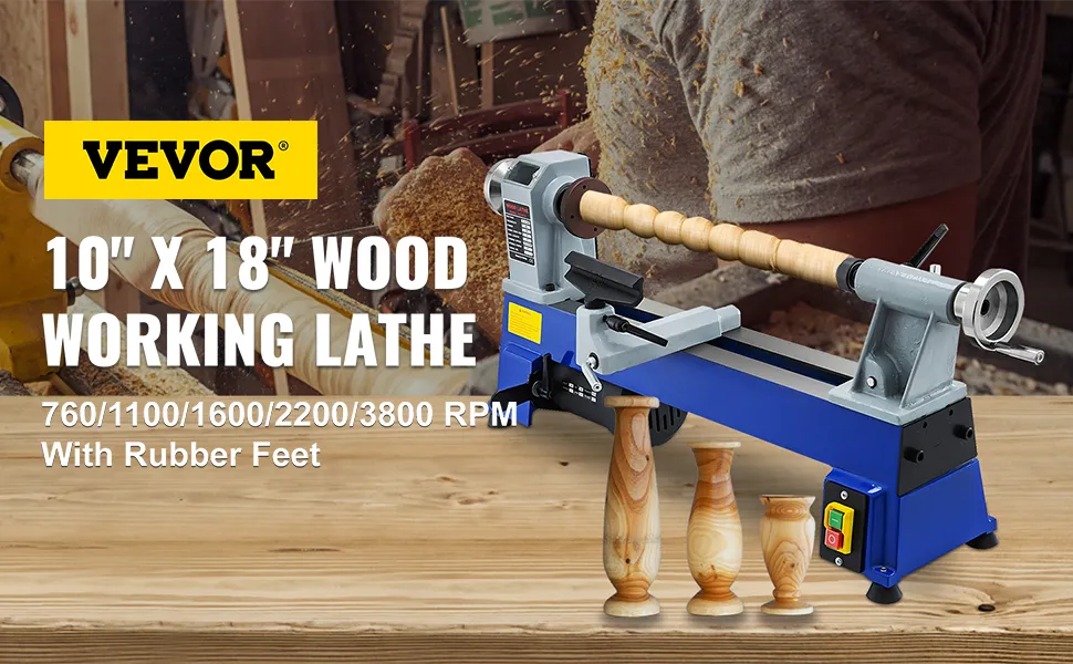 Konstrukcja żeliwna: Tokarki do drewna żeliwnego są trwałe i mocne, zapewniając większą stabilność i płynną pracę. Solidna żeliwna konstrukcja zmniejsza wibracje.