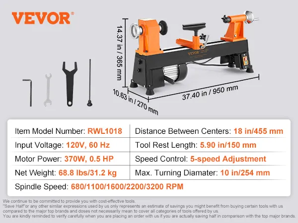 Tokarka jest wyposażona w silnik o wysokiej częstotliwości 370 W, który umożliwia użytkownikowi łatwe cięcie i planowanie z dużymi prędkościami.
