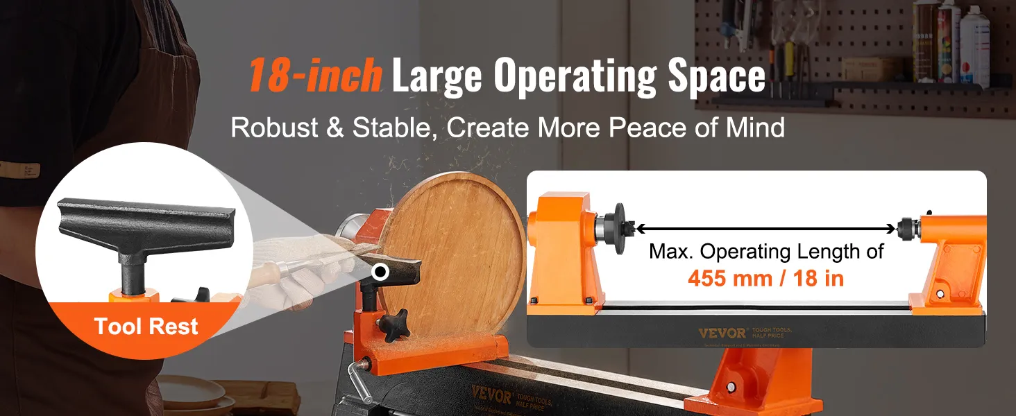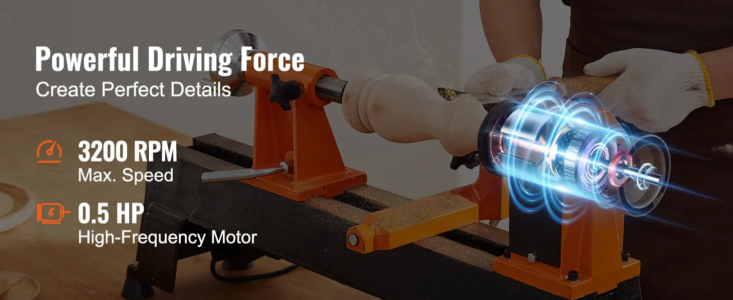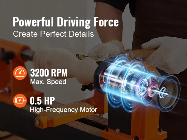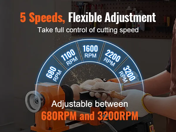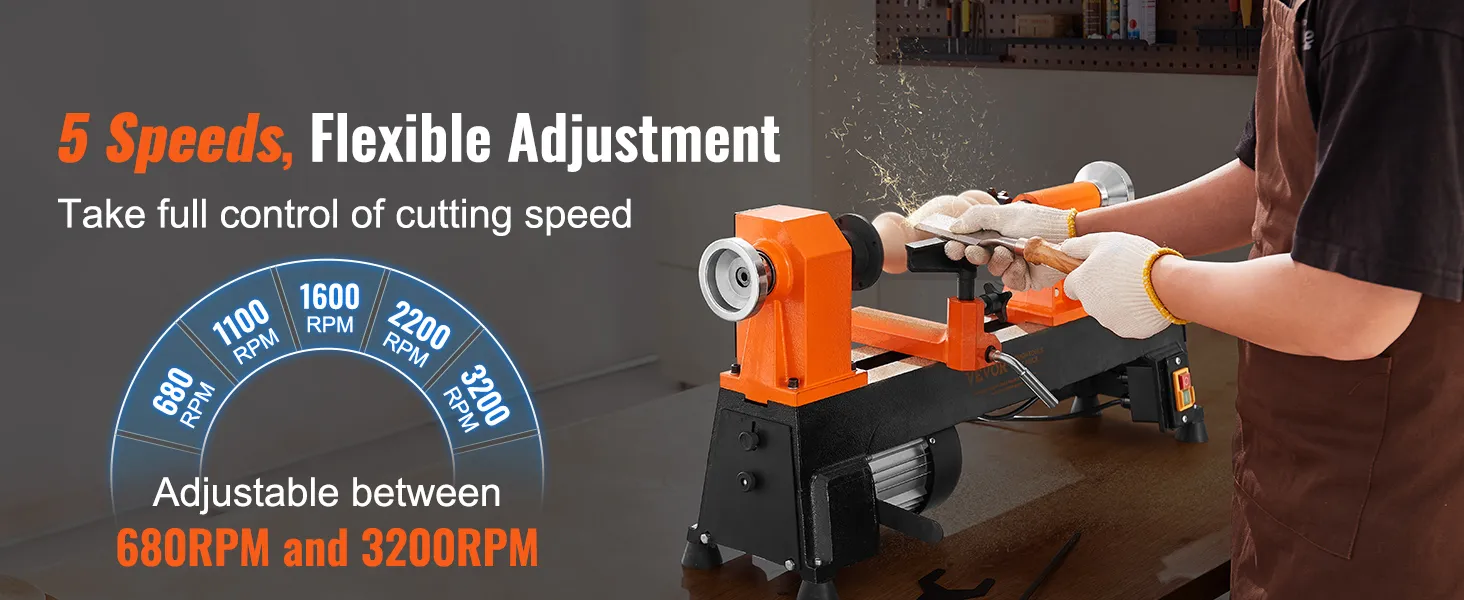 Możesz łatwo dostosować prędkość do swoich potrzeb, aby uzyskać różne prędkości cięcia. Dzięki tej tokarce elektrycznej możesz rozpocząć niekończącą się kreatywną przygodę z obróbką drewna.