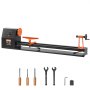 PROFESJONALNE AKCESORIA: Tokarka o zmiennej prędkości jest dostarczana z pełnym zestawem akcesoriów, w tym 1 x klucz sześciokątny, 1 x płyta czołowa, 3 x dłuta i wiele innych, aby z łatwością zaspokoić potrzeby entuzjastów majsterkowania. Czas wyruszyć w niekończącą się podróż kreatywnej obróbki drewna.