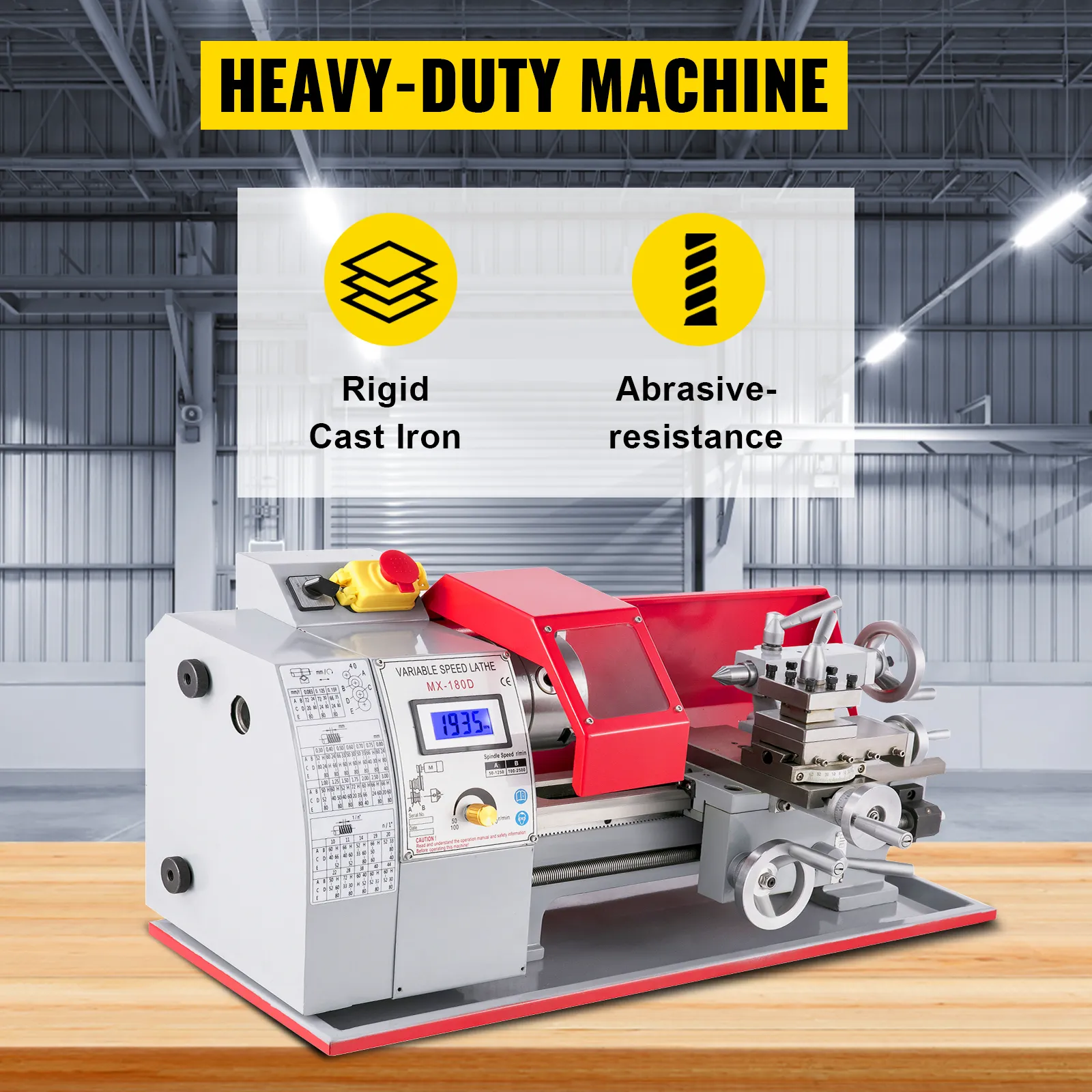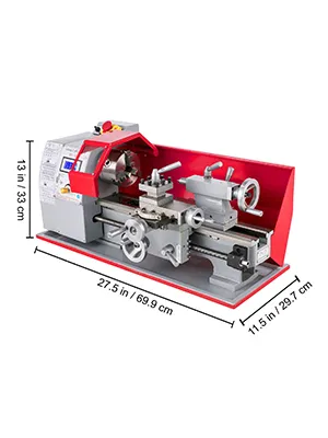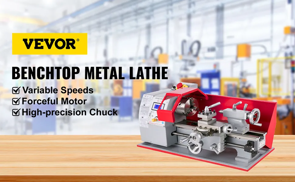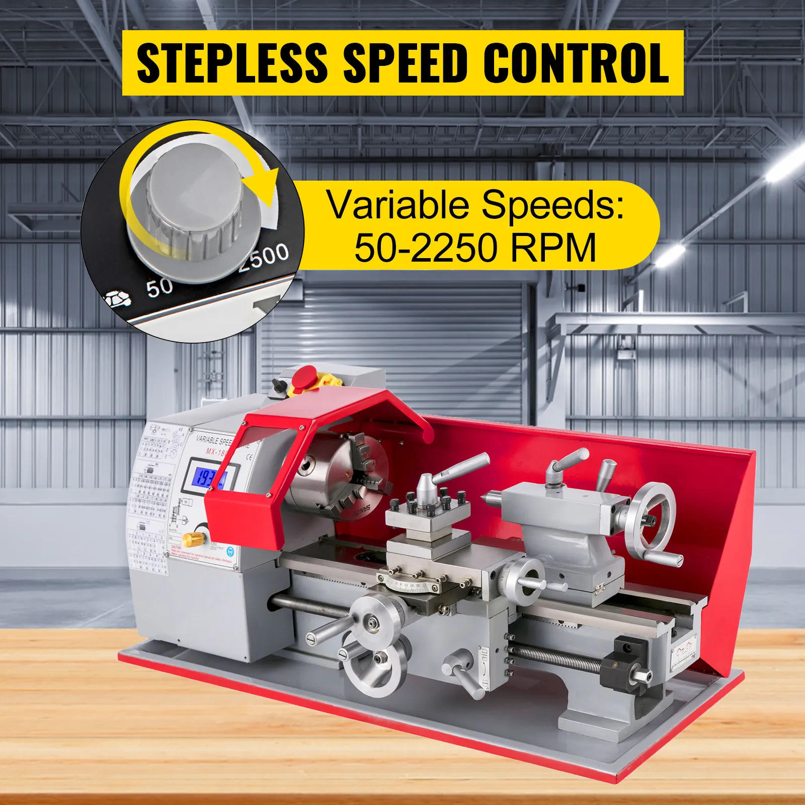 Tokarka do metalu ma płynnie zmienną prędkość obrotową od 50 do 2500 obr./min. Prędkość można zmienić obracając przełącznik, a na wyświetlaczu pojawi się aktualna liczba.